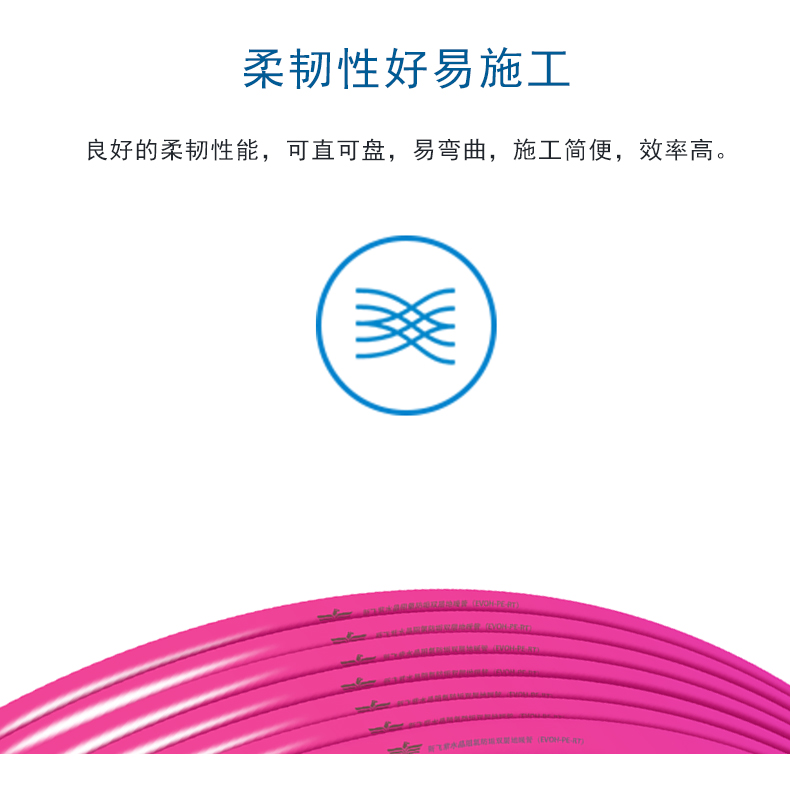 3、柔韌性強(qiáng):便于施工,EVOH地暖管耐低溫,在零下七十度也可以柔順施工;